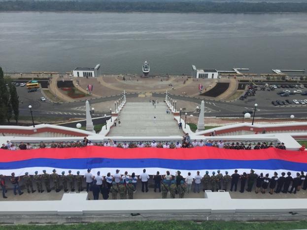 Нижегородцы развернули российский триколор на ступенях Чкаловской лестницы