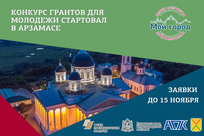 Центр развития добровольчества «Мой город» объявил городской грантовый конкурс молодежных проектов и инициатив «Молодой Арзамас», в котором смогут принять участие граждане 18-35 лет. Объем финансирования одного проекта - до 57,5 тысячи рублей.