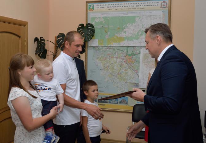 На территории Арзамасского района осуществляется муниципальная программа в рамках региональной «Обеспечение жильем молодых семей в Нижегородской области». Получение социальной выплаты позволяет улучшить жилищные условия семьям. За последние три года в нашем районе эту возможность получили 11 семей. В канун Дня России такое радостное событие произошло еще в одной молодой семье: свидетельство о праве на получение социальной выплаты получили супруги Пановы из Водоватова.