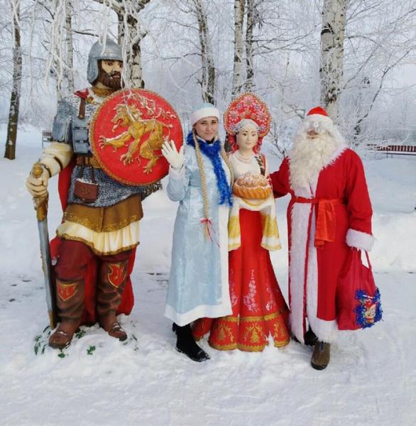 В Виняеве жители празднично оформили территорию в центре села, построили ледяную горку, поставили и нарядили елку, установили рядом большие новогодние фигуры Деда Мороза, Снегурочки и снеговика.