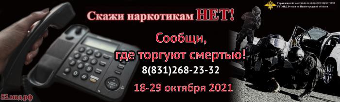 В 2020 году за время проведения акции на телефон доверия ГУ МВД России по Нижегородской области поступило 537 сообщений о фактах незаконного оборота наркотических средств и психотропных веществ. Благодаря информации граждан сотрудники полиции выявили 39 наркопреступлений и 327 административных правонарушений.